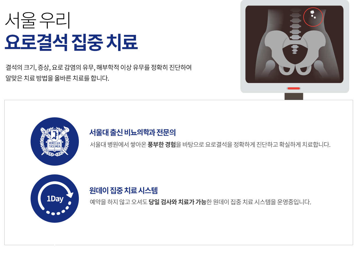 대부분의 경우 일차적으로 신장에서 만들어지고 소변이 나오는 길을 따라 요관, 방광, 요도로 이동하며 결석의 위치에 따라 신장 결석, 요관 결석, 방광 결석 등으로 진단하게 됩니다.